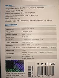 | 94 of 95 people found the following review helpful By Raaj (Kolkata, India) - See all my reviews Verified Purchase(What is this?) This review is from: Boya Omnidirectional Lavalier Condenser Microphone With 20ft Audio Cable- For DSLRs,Camcorders,Video Cameras And iPhone,Samsung,HTC Smart Phone (Electronics) This review might be little lengthy but I can assure you, its worth reading. I am writing this review after personally using the item for a month now.IN BOX CONTENT ð' Omnidirectional Microphones with 6 metre wire ð' Metal lapel clip ð' Foam windscreen ð' LR44 battery ð' Leather pouch ð' 1/4" Adapter ð' User manual The Manufacturer The product is a made in China product made by BOYA AUDIO EQUIPMENT(SHENZEN) CO. LTD. and it has a QR label at the back by which you can check the genuinity of the product. Boya is into making of Audio equipments for quite a while now and this model ( BY M1) is one of their cost effective lapel mic. ð'ª PRODUCT SPECIFICATION THE best part about owning this product is that , it works with almost any audio recording equipment we can think of. Be it ð'LAPTOP, ð'TABLETS, ð'SMARTPHONES, ð'CAMCORDER, ð'DSLR or ð'AUDIO CODERS, this product works with all of them. The mic comes with a universal... Read more 17 of 17 people found the following review helpful Verified Purchase(What is this?) This review is from: Boya Omnidirectional Lavalier Condenser Microphone With 20ft Audio Cable- For DSLRs,Camcorders,Video Cameras And iPhone,Samsung,HTC Smart Phone (Electronics) The best mic for the price. Clear sound, actually pretty sensitive. Can be used with Mac, Windows, DSLR cameras, smartphones. I tried all and it works wonderfully. Great product. 3 of 3 people found the following review helpful Verified Purchase(What is this?) This review is from: Boya Omnidirectional Lavalier Condenser Microphone With 20ft Audio Cable- For DSLRs,Camcorders,Video Cameras And iPhone,Samsung,HTC Smart Phone (Electronics) I wanted some thing that recorded high quality musical instrument audio via mobile Phone video for YouTube so ordered dis. Arrived on time package was very good the product quality is high I used it on my one plus 5T. And My Ipad I had to use open camera app but was simply plug and record I recorded piano sound and my own voice it was of very good quality but mostly Iâd recommend for voice over and not for recording musical instrument received a pouch and mic sponge cap and extra mono adapter and a spare battery And metal crocodile clip although cable quality is average if used with care it will last but otherwise built quality and job quality of mic is superior I am happy with my buy I paid 1250 rs thank you |