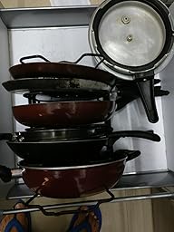 | 8 of 8 people found the following review helpful By Verified Purchase(What is this?) This review is from: Callas Kitchen Cabinet Pantry Pan and Pot Lid Organiser Rack Holder, Black CA. 63 A decent product. As described and has helped reduced the Clutter. The biggest PRO is you don't need to fix is. Its Standalone!! But there are screws where you can fix it to the "floor"(Or the bottom of your kitchen cabinet) All the pans I put in there are heavy duty creamic pans so no problem with weight. A must buy if you want to organize pans. I bought this because I noticed my mom was keeping pans one inside the other and that created scratches. For a long time we used the bubble wraps we get from products we order from amazon to keep between the pans. But it was a big mess you always had to find place to keep the bubble wrap This nifty little product solved that. No scratches on your pans and a space saver 2 of 2 people found the following review helpful Verified Purchase(What is this?) This review is from: Callas Kitchen Cabinet Pantry Pan and Pot Lid Organiser Rack Holder, Black CA. 63 Good quality metal and the powder coating is neatly done too.. a great space saver By Verified Purchase(What is this?) This review is from: Callas Kitchen Cabinet Pantry Pan and Pot Lid Organiser Rack Holder, Black CA. 63 Excellent for storage of frying pans to prevent them from getting scratched. Bought 2 of them! |