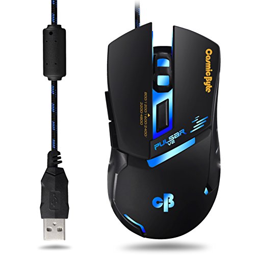 Cosmic Byte CB-M-05 Pulsar V2 4800DPI Programmable Gaming Mouse with Software,7 color RGB LED (Black)||