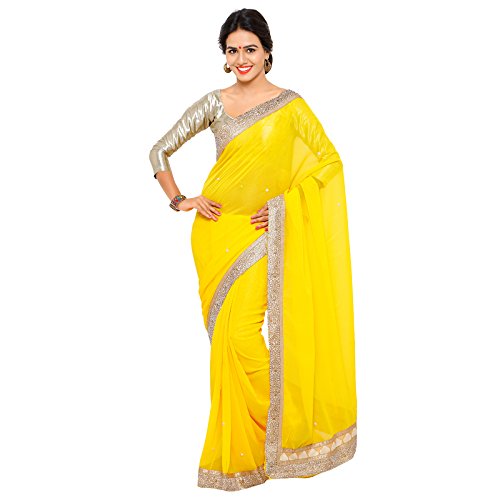 Mira Fashion Women's Georgette Saree With Blouse Piece (Mf-11_Yellow)