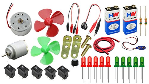 Package Includes: 1 dynamo motor 3 V 6v motor -1 pcs LEDs - 10pcs rocker switch - 5pcs MINI Propeller -2pcs 9V Battery Snap to Alligator Clip Power Test Cable - Black + Red -1pcs Alligator Clips Jumper Cable 1 Pair resistor - 4 pcs 9v battery 2pcs 9v battery connector 1pcs 1 meter wire Buzzer - 1pcs