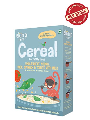 Slurrp Farm Cereal, Wholewheat, Moong, Rice, Spinach and Tomato with Milk, 200g||