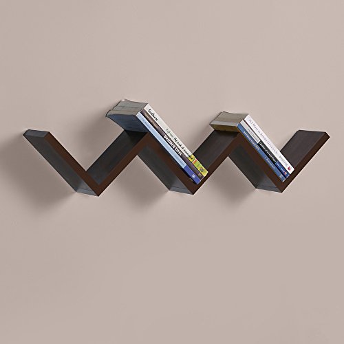 Driftingwood W Shape Wall Mount Book Shelf Zigzag Wall Shelf - Rich Walnut Finish||