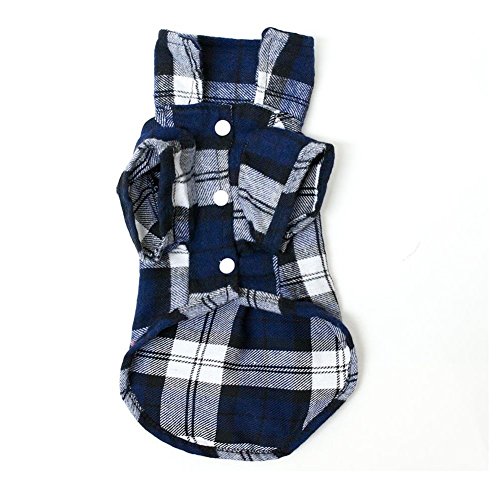 Generic Pet Dog Blue Plaid Pattern T-Shirt Lapel Coat Jacket Clothes Apparel Tops--S||