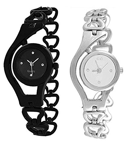 TESLO Analog Full Black & Silver casual and Round style Combo watch OR party wedding and wrist watch of formal watch and look for girls , women and collage teenagers (pack of 2)||