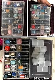 | 28 of 28 people found the following review helpful Verified Purchase(What is this?) This review is from: Bulfyss Jianhua Plastic Jewelry Case Organizer with Adjustable Dividers 15/24/36 Grid, Transparent(Pack of 3) (Kitchen & Home) The 15 grid box was thinner than I expected. The quality of the box was okay, not very good but not extremely bad either. It's not very sturdy and will break easily if you put pressure on it. It's a small compact box good for organising small stuff like pins, etc. The 24 grid box has a bad quality. The lid is detachable and one side of this lid keeps getting detached on its own when I open or close the box.I absolutely loved the 36 grid box. I used it to organise my nail paint bottles. It holds most of my nail paint brands and I can even fit two of some nail paints in one compartment. If you see the pictures I posted, I currently have 24 nail paints in one box. It allows me to see the shades on the front as well as the back. The quality of this box is good, it's very sturdy and holds the weight of 24 nail paint bottles well. I will surely be buying another one of this! Overall, it's good enough buy depending on your needs, what you need to organise. Even if the... Read more 9 of 9 people found the following review helpful Verified Purchase(What is this?) This review is from: Bulfyss Jianhua Plastic Jewelry Case Organizer with Adjustable Dividers 15/24/36 Grid, Transparent(Pack of 3) (Kitchen & Home) Will give 5...coz it does the purpose.... The best way to organize the things ...comes with 3 set of different sizes....the bigger one is of good quality plastic and middle box is of little less quality plastic and the smaller one is also of less quality box... But that doesn't mean it's of no purpose ..it does it's job... We r satisfied with the product...got it without any damage ... The inner compartments r adjustable... Shown pic below.... 2 of 2 people found the following review helpful Verified Purchase(What is this?) This review is from: Bulfyss Jianhua Plastic Jewelry Case Organizer with Adjustable Dividers 15/24/36 Grid, Transparent(Pack of 3) (Kitchen & Home) Really loved the quality, the no of compartments n adjustable too... You can fit chains, earrings, danglers, studs bracelets n I just loved this:) |