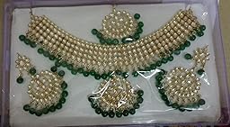 Fancy Party Wear Necklace Jewellery Set with Mangtika Earrings for Women and Girls