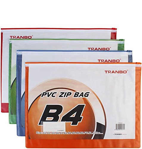 ★ Package contains TRANBO 4 Piece PVC Zip Bags Set (B4 Size) in Random Colors.