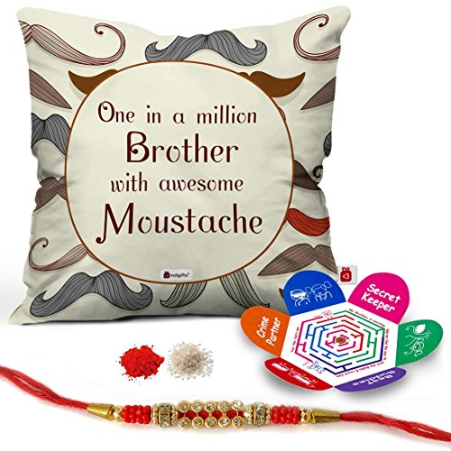 | 5 of 5 people found the following review helpful Verified Purchase(What is this?) This review is from: Indigifts MicroSatin, Fibre and Cotton Moustache Printed Cushion Cover with Filler, 12x12-inch (White) Cushion is really nice but instead of greeting card I received another rakhi.ð«Ã°¡ You should double check before packing orders. 1 of 1 people found the following review helpful By Malvika (India) - See all my reviews Verified Purchase(What is this?) This review is from: Indigifts MicroSatin, Fibre and Cotton Moustache Printed Cushion Cover with Filler, 12x12-inch (White) Reached on time. The print on the pillow was a bit light but otherwise as shown in picture. Nice funky gift for finicky brothers. Verified Purchase(What is this?) This review is from: Indigifts MicroSatin, Fibre and Cotton Moustache Printed Cushion Cover with Filler, 12x12-inch (White) Amazing combo deal. Sent it to my brother for Rakhi. He loved it. The quality of the cushion and cover is good. And the size is also nice. Rakhi is exactly as shown in the picture. Overall a good experience with the product. |
