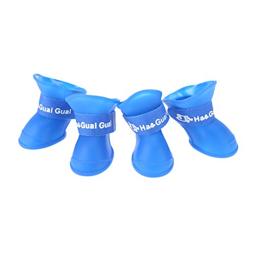 Rrimin 4pcs/lot Pet Dog Waterproof Anti-slip Rain Boots Silicone Dog Shoes(Blue,L)||