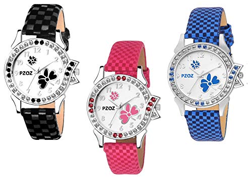 PZOZ Analog Multicolor Dial Girl's Watch Combo(Set Of 2)||