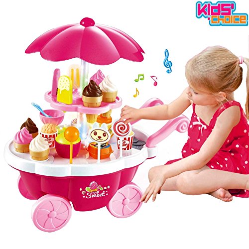 Kids Choice Kid's Ice Cream and Sweet Marketing Cart with Music Role Pretend Play Toy||