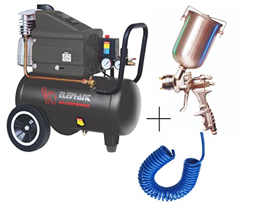 Painter Spray Gun (LABEL) Elephant Air Compressor with PU Pipe and Fittings, 30L||