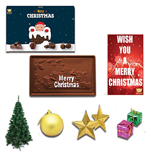 BOGATCHI Christmas Hampers, Complete Christmas Celebration Kit, Merry Christmas Chocolates, Premium Xmas Gift Dark Chocolate Bar + FREE Xmas SANTA Toy, FREE Merry Christmas Greetings Card, FREE Xmas Stars, FREE Xmas Tree, FREE Xmas Gifts