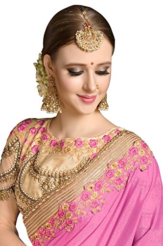 FashionFort Women's Georgette Saree with Banglori Blouse Piece (Pink and Gold, Fftz)