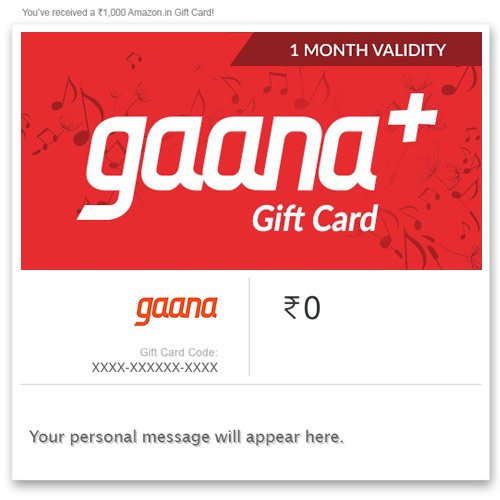 With this Gift Card, customers will get 1 month of Gaana subscription.