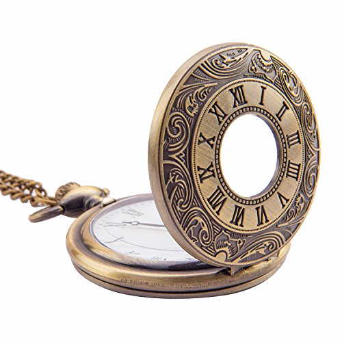 Kartique Analogue White Dial Men's Half Hunter Pocket Watch with Chain and Wooden Box - POCWATROMAN_1||