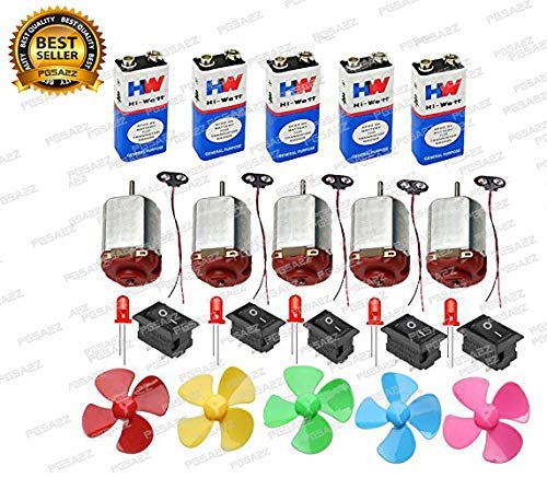REES52 Science Projects Kit for DIY Toy Motor, 9V Battery, Mini 4 Wing Fan, 9V Battery Snap, Switchs and LEDs, 5 Pcs Each||